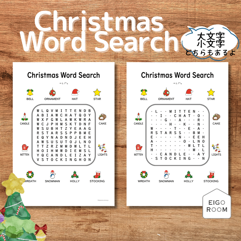 ワードサーチ Christmas Word Search クリスマス言葉探し① 大文字小文字・。