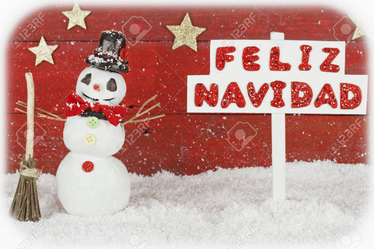 スペイン語でメリー クリスマスの言葉を道しるべと 1 つの雪だるまの写真素材・画像素材 Image 33866586。