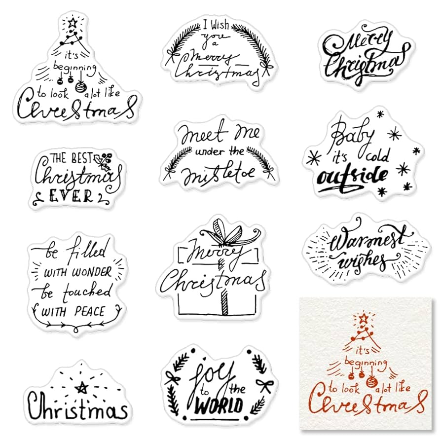 11個 クリスマス 祝福言葉 クリアスタンプ カード作成 フォトアルバム装飾 クリスマスツリーゴムスタンプ ギフトボックス シリコンスタンプシールクリスマス DIY スクラップブック。