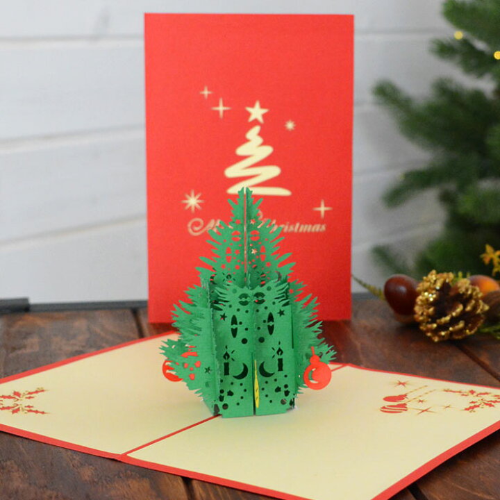 楽天市場最大500円クーポンポップアップクリスマスカード クリスマスツリー メリークリスマス Merry Christmas サンタクロースクリスマスツリー トナカイ メッセージカード 立体 飛び出すグリーティングカード ベトナム雑貨 アジアン雑貨 メール便対応 vn50464。