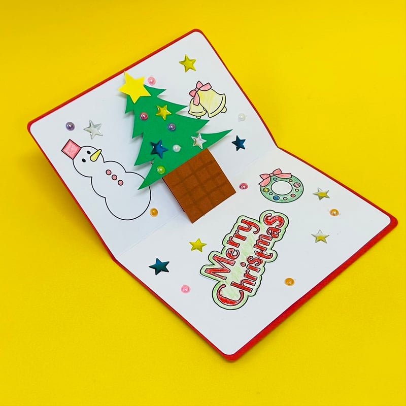 手作りクリスマスカードの作り方 保育園・簡単・飛び出す・かわいい・おしゃれ・子ども保育士くらぶ。