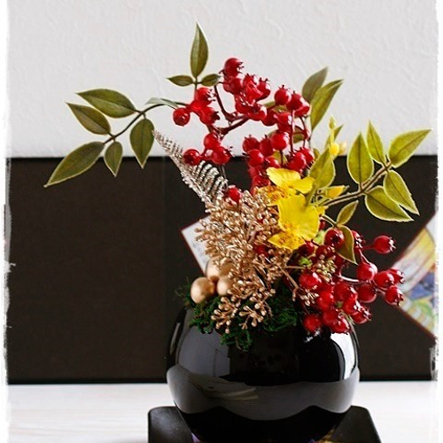 正月飾り~金柳・大王松・バラ・百合・南天・鶴の水引飾り入りお正月アレンジ 迎春 和風 床の間 cmny017 アートフラワー FlowerStudio Eclat 通販 16780019Creema クリーマ。