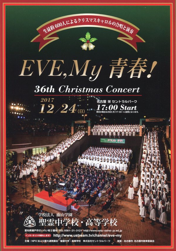 生徒約600人によるクリスマスキャロルの合唱と演奏 第36回 EVE, My 青春!名古屋久屋大通・栄イベント情報。