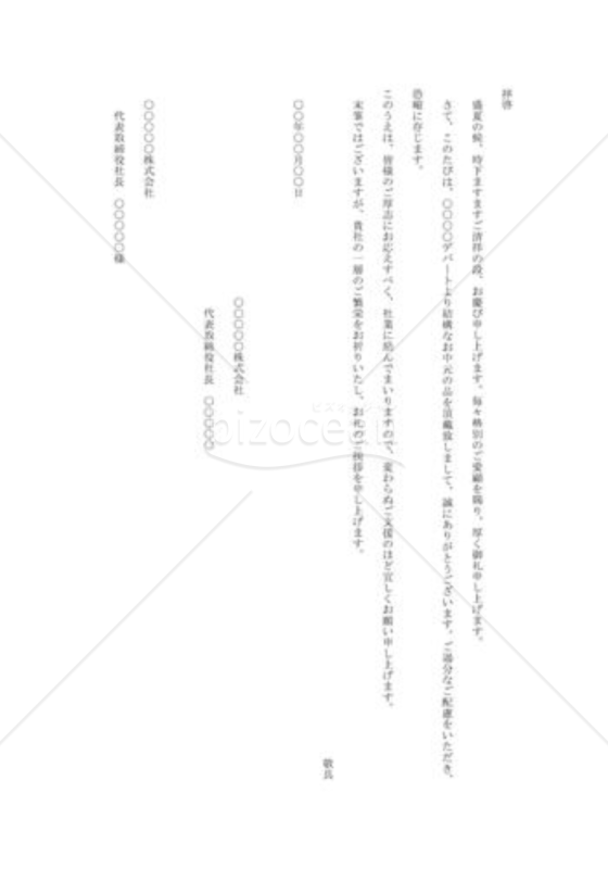お礼状 お中元 の書式テンプレート Word・ワードテンプレート・フリーBiz。