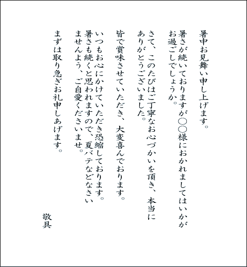 文例 例文お中元をいただいたお礼 取引先へ手紙の書き方。