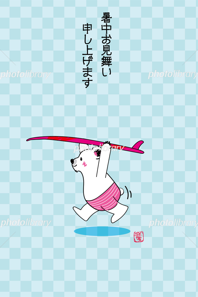 そのまま使える暑中見舞いのかわいいイラスト テンプレート サーフボードを持つシロクマ和柄縦 イラスト素材6437489- フォトライブラリ。