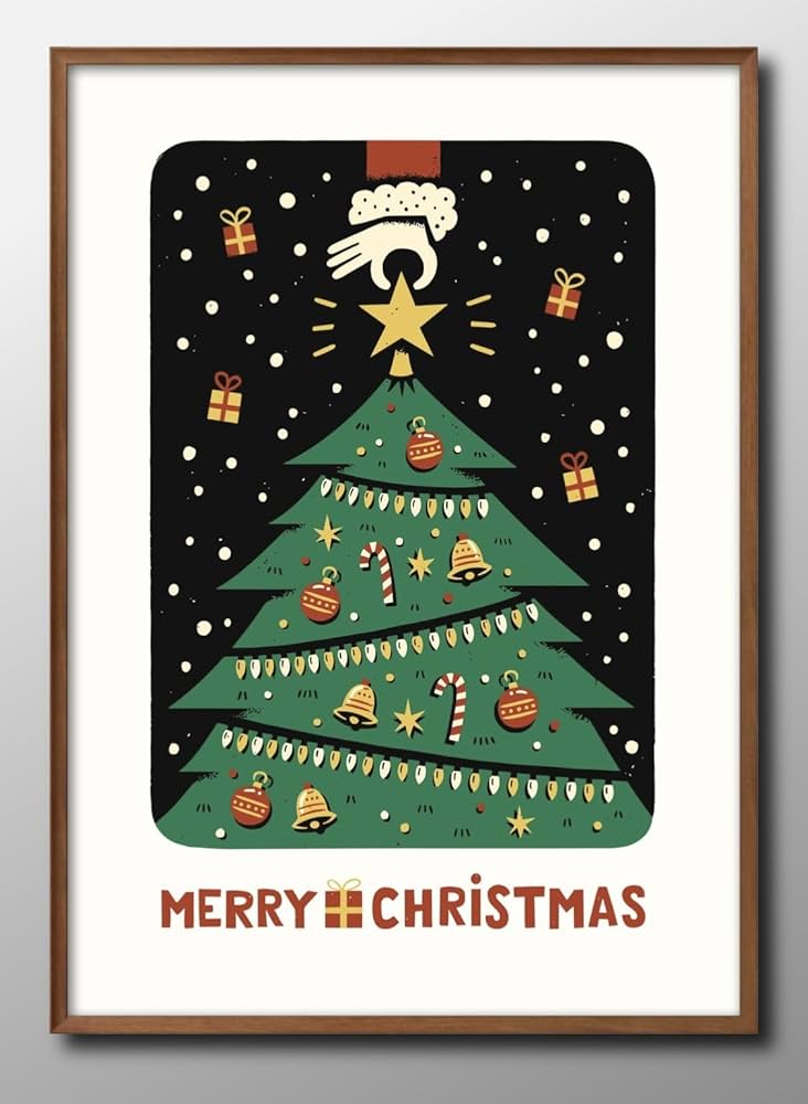 クリスマス ツリー オーナメント A3 サイズ ポスター アート おしゃれ 絵画 インテリア 北欧 イラスト マット紙 艶消し アートパネル 額フレーム デザイン 壁掛け ギフト 新築祝い ディスプレイ 引越し祝い 新生活 空間デザイン -お家で美術館 - プレゼント&ギフト。