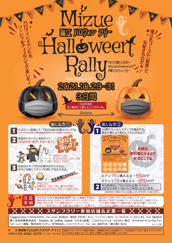 ☆瑞江ハロウィンラリー☆ 仮装して参加をまわろう!瑞江を盛り上げるスタンプラリー ※スタンプラリー専用台紙は、事前に各参加店舗でゲットしてね!うなぎ・とんかつ濱亀のニュースまいぷれ 江戸川区。