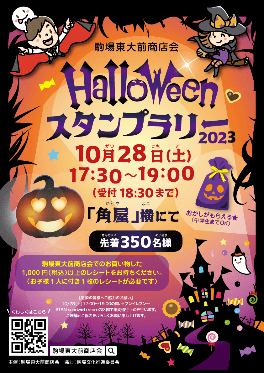 ☆\ハロウィン スタンプラリー 2023 ☆10 28 土 17:30~☆先着350名様駒場東大前商店会公式ホームページ。