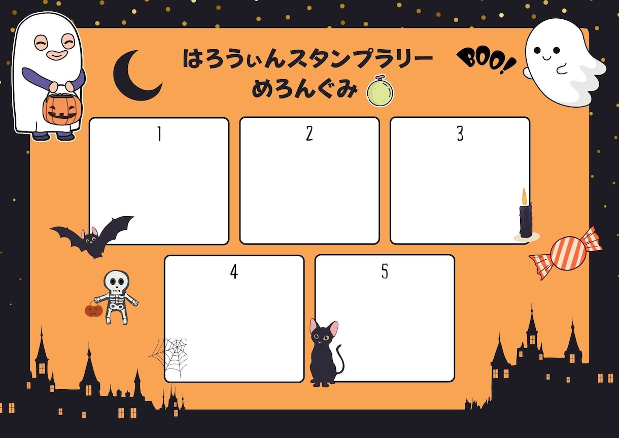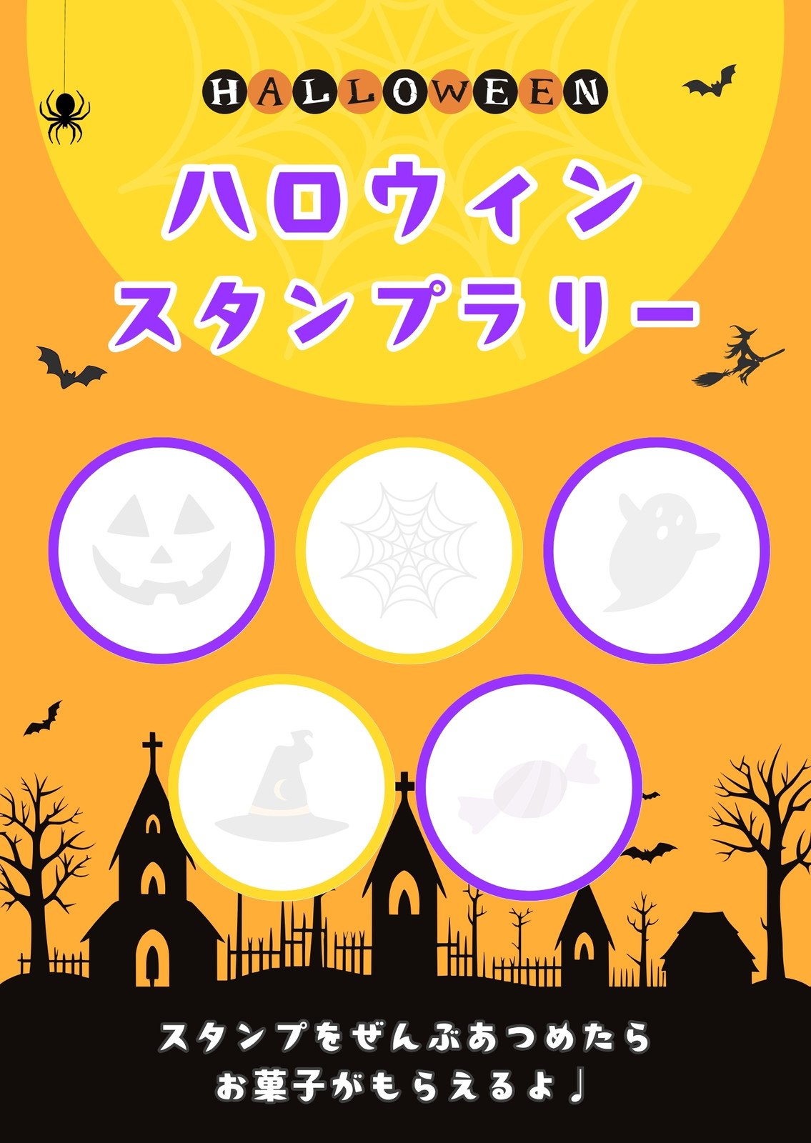 canva Pro ハロウィンスタンプラリー台紙のテンプレート。
