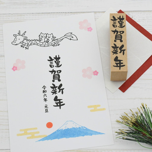 年賀状はんこ 謹賀新年 縦書き筆文字 龍のはんこに はんこ・スタンプ 京はんこ Akane* 通販 10562439Creema クリーマ。