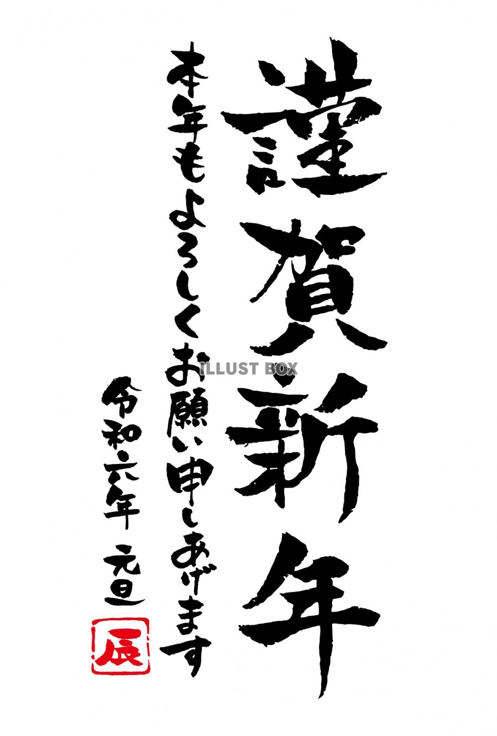 年賀状筆文字 謹賀新年 縦書き6:イラスト無料。