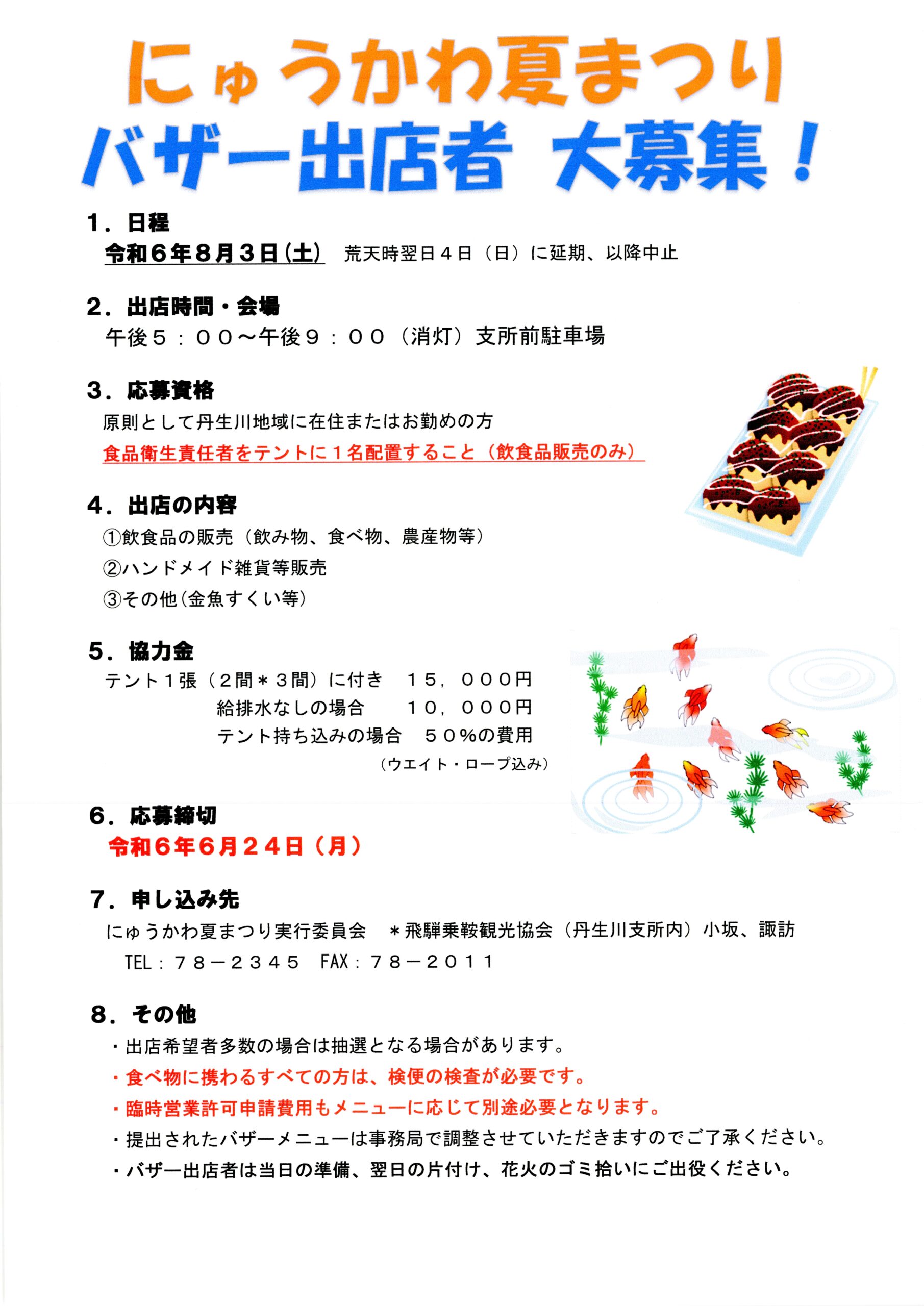 にゅうかわ夏まつりのバザー出店者を募集中です!公式 丹生川まちづくり協議会。