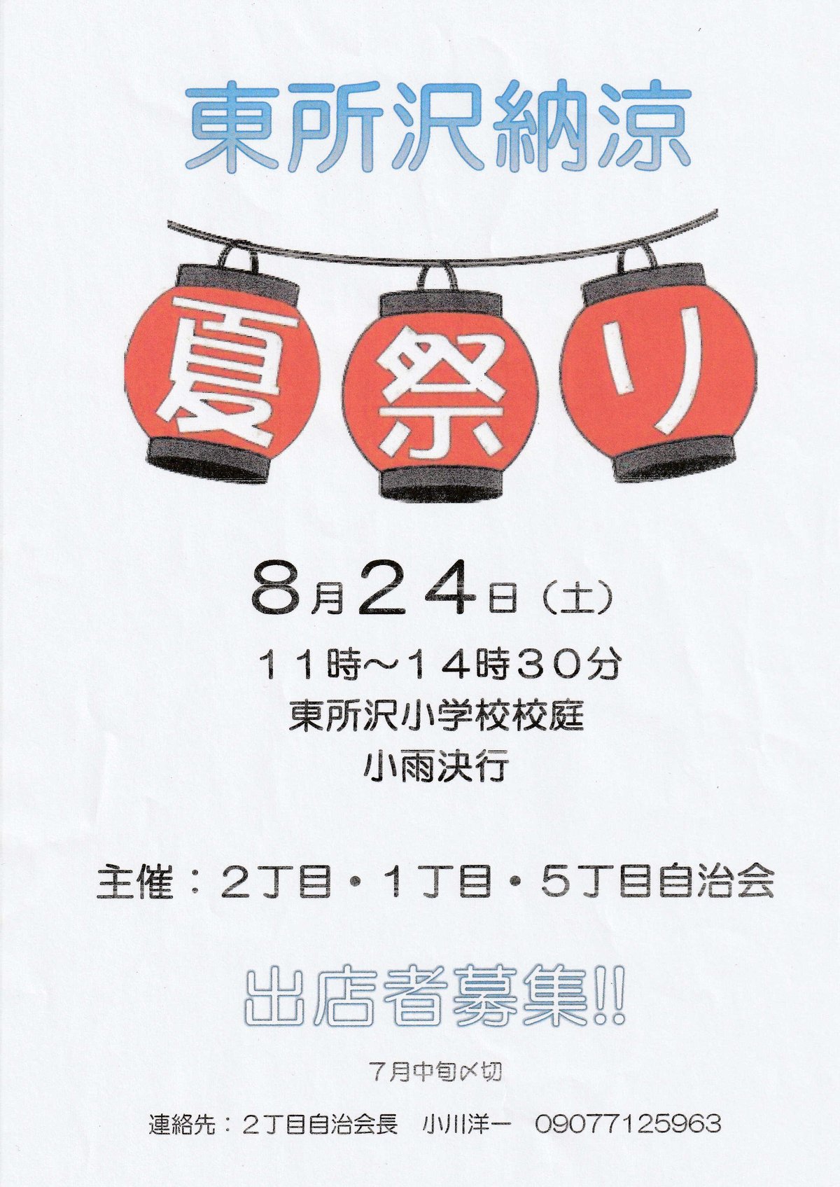 8月3日 金 、4日 土 夏祭り出店募集 中野区観光協会。