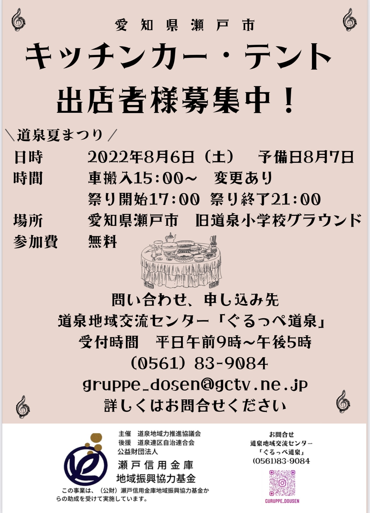 一般出店募集!! お待たせいたしました!今年も一般出店の募集を開始いたします! 飲食出店 テント・キッチンカー ・縁日出店をお考えの方は、こちらのGoogleフォームよりお申し込みください!☆フォーム内出店要項、注意事項等よくご確認の上ご応募願います。お。