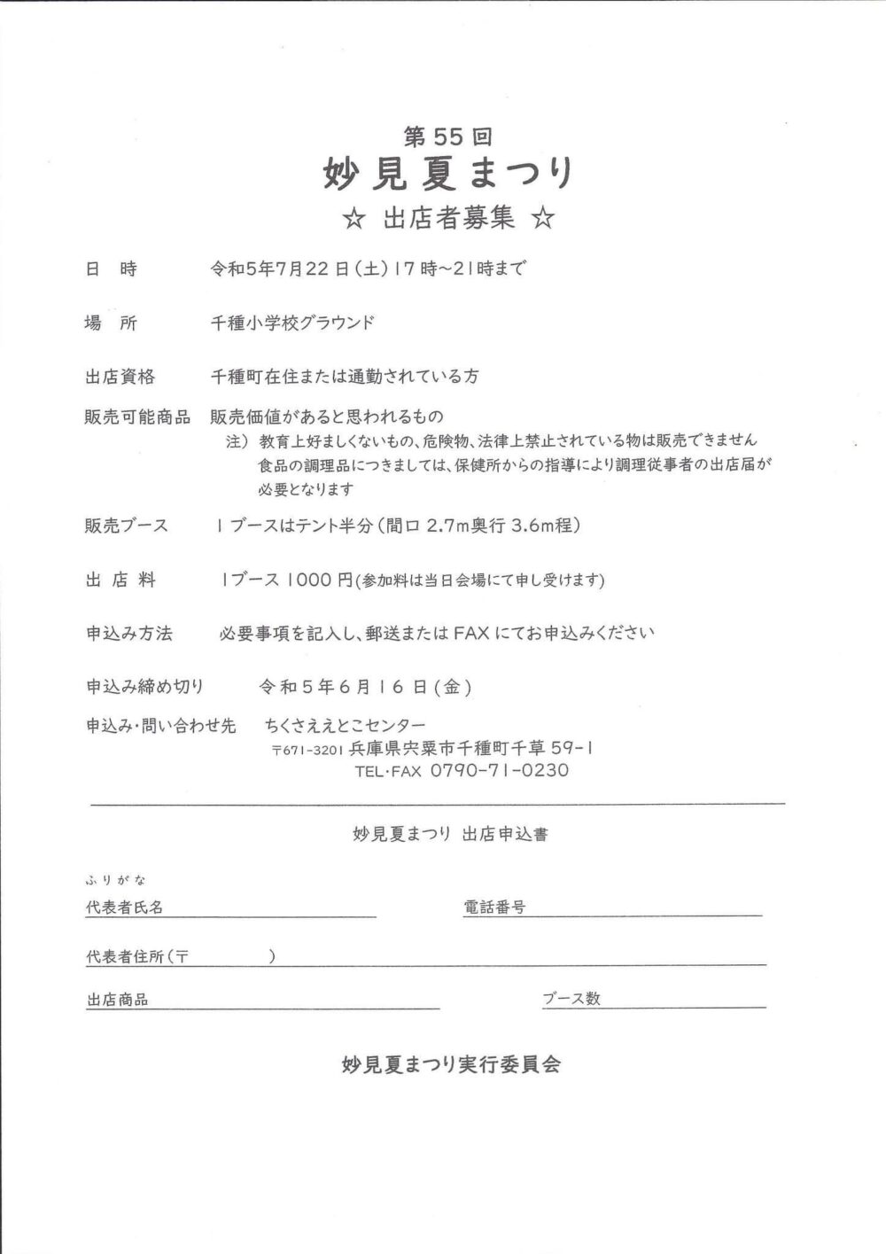 第55回 妙見夏まつり☆出店者募集☆。