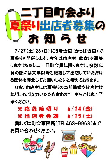 今年もまた鷺山に熱い夏が来る!!鷺山夏祭り大会 露店出店者募集! – さぎ山の広場 – 鷺山まちづくり協議会。