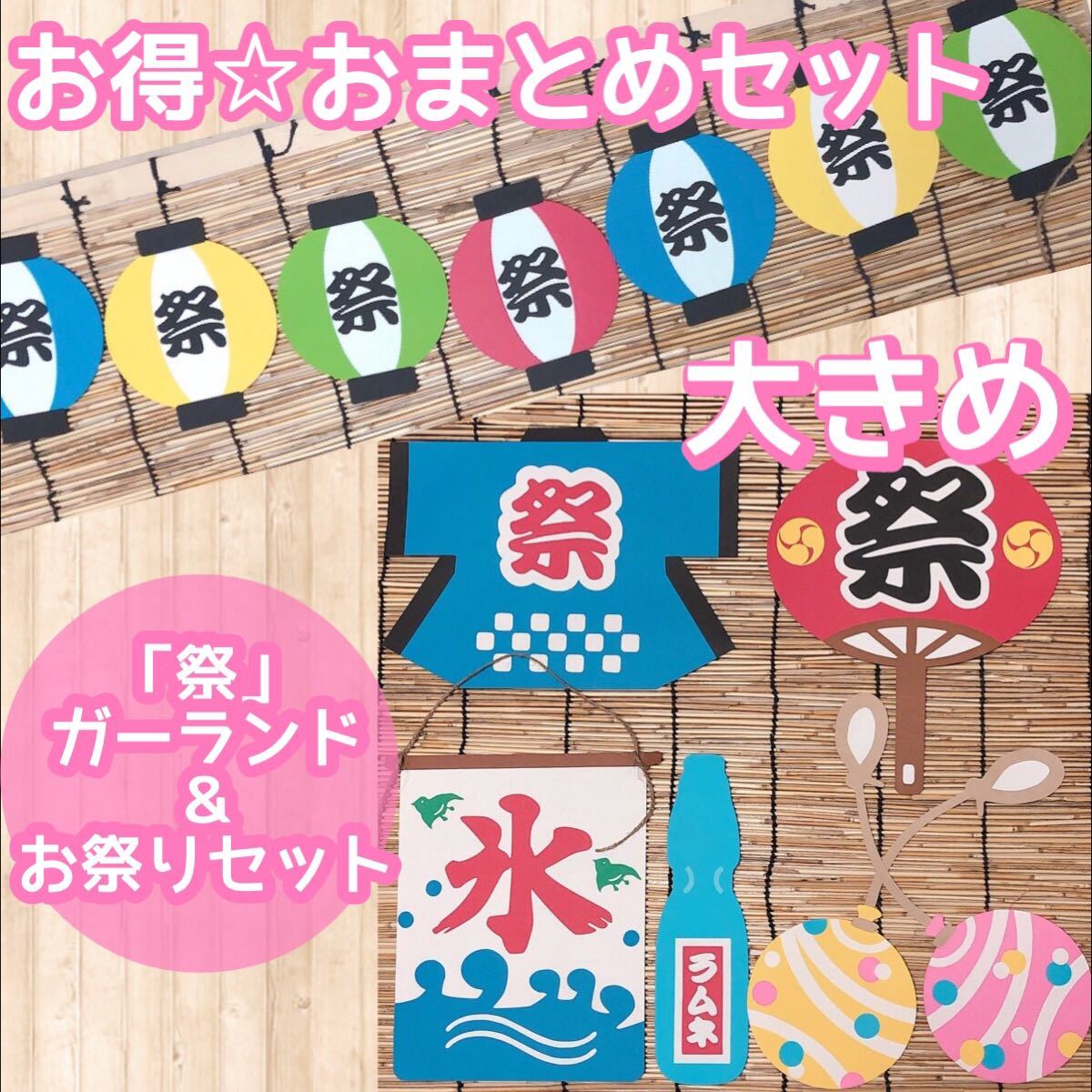 縁日 お祭り ガーランド 吊るし飾り 壁面飾り 8月 - メルカリ。