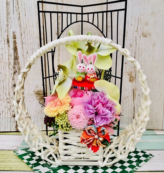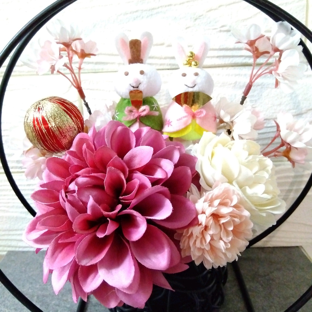 ちりめん兎のひな祭り~フラワーアレンジメント・台座付き~桃の節句 お祝い 初節句 贈り物 フラワーギフト リース Like a garden 通販18832915Creema クリーマ。
