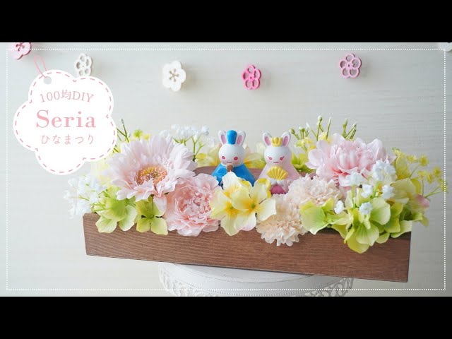 100均diy ダイソー購入品で作るひな祭りアレンジ🎎🌸 雛飾り フラワーアレンジメントflower arrangement 插花 꽃꽂이。