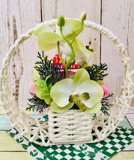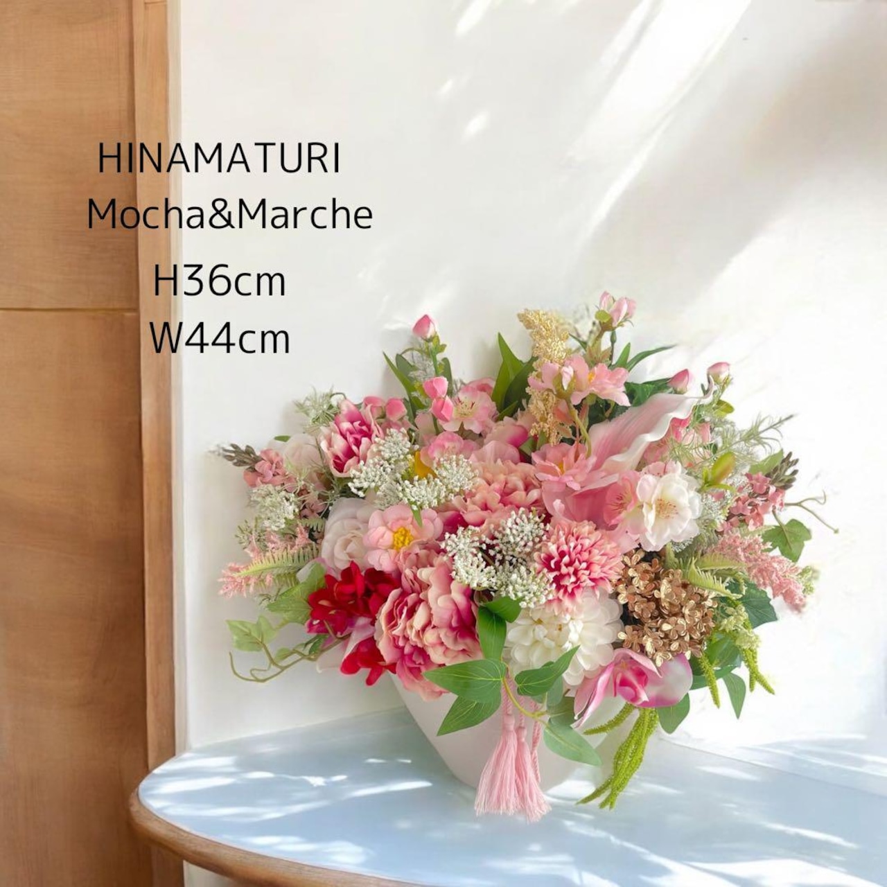 ひな祭りアレンジ 春アレンジメント 春飾り 春インテリア 造花 光触媒フラワー 桃の節句 フラワーアレンジ アーティフィシャルフラワー 和アレンジMocha&Marche モカアンドマルシェ フラワーショップ。