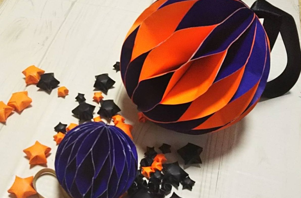 折り紙で部屋飾りにハロウィンハニカムボールを手作り♪大きなサイズは子どもと作れて可愛いよちょちょいの工作部屋。