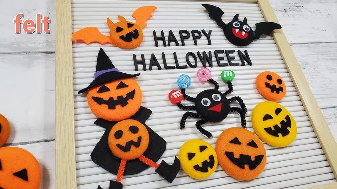 100均DIY フェルトで作るハロウィン飾り🎃くるみボタンでレターボードの飾り DIYfeltHalloween room decorletterboard icon。