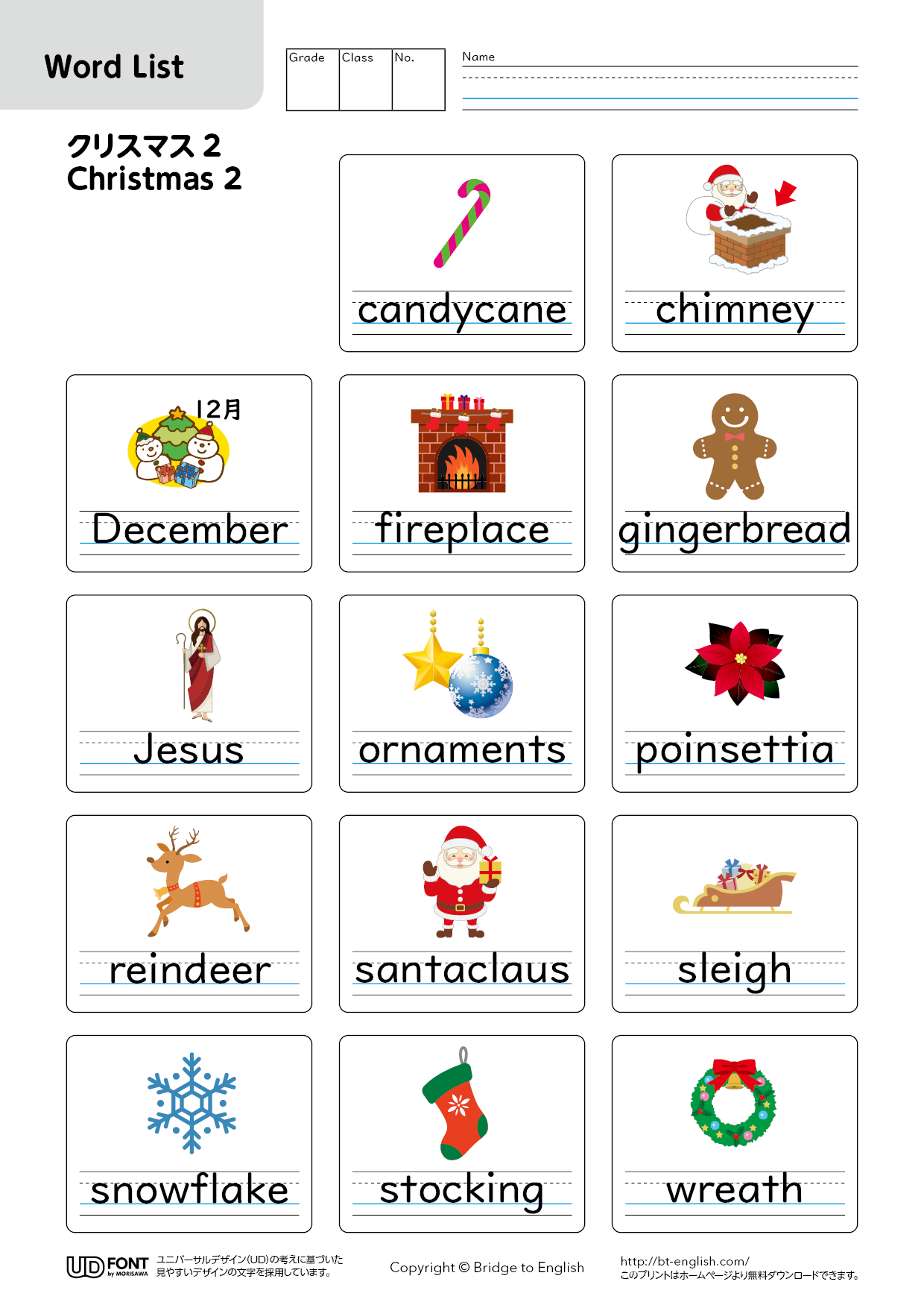 クリスマス 英語プリント・ワークシート 無料ダウンロード:Bridge to EnglishBridge to English。