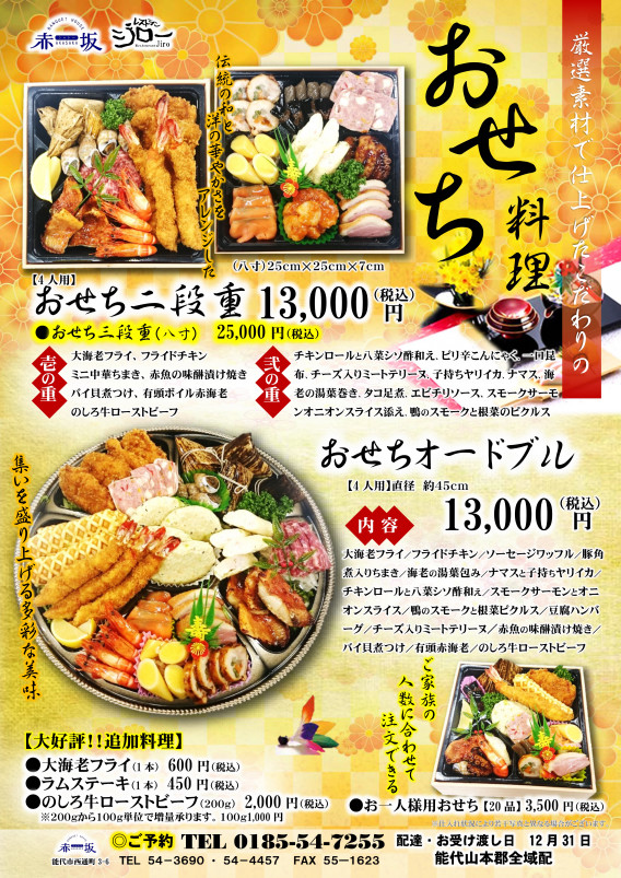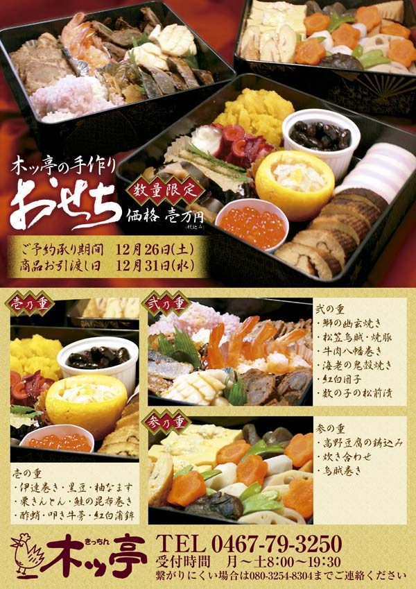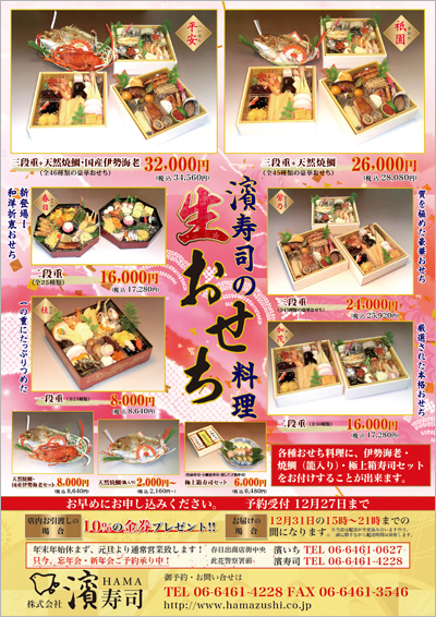 飲食店の「おせち」購買訴求案内チラシ作成事例チラシ作成のデザイン・印刷が安い大阪Canチラシ制作部。