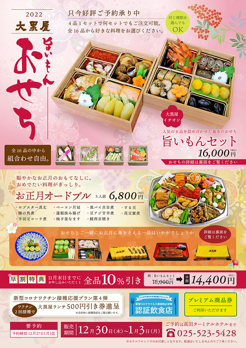 完売 2022 おせち料理「匠」ホテルリッチ&ガーデン酒田Hotel Rich&Garden Sakata。