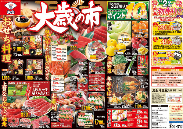 今日のチラシは「大歳の市。末広特製おせち2,980円」株式会社末広。