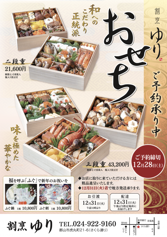 割烹 ゆり :おせちチラシ2020年福島カラー印刷株式会社。