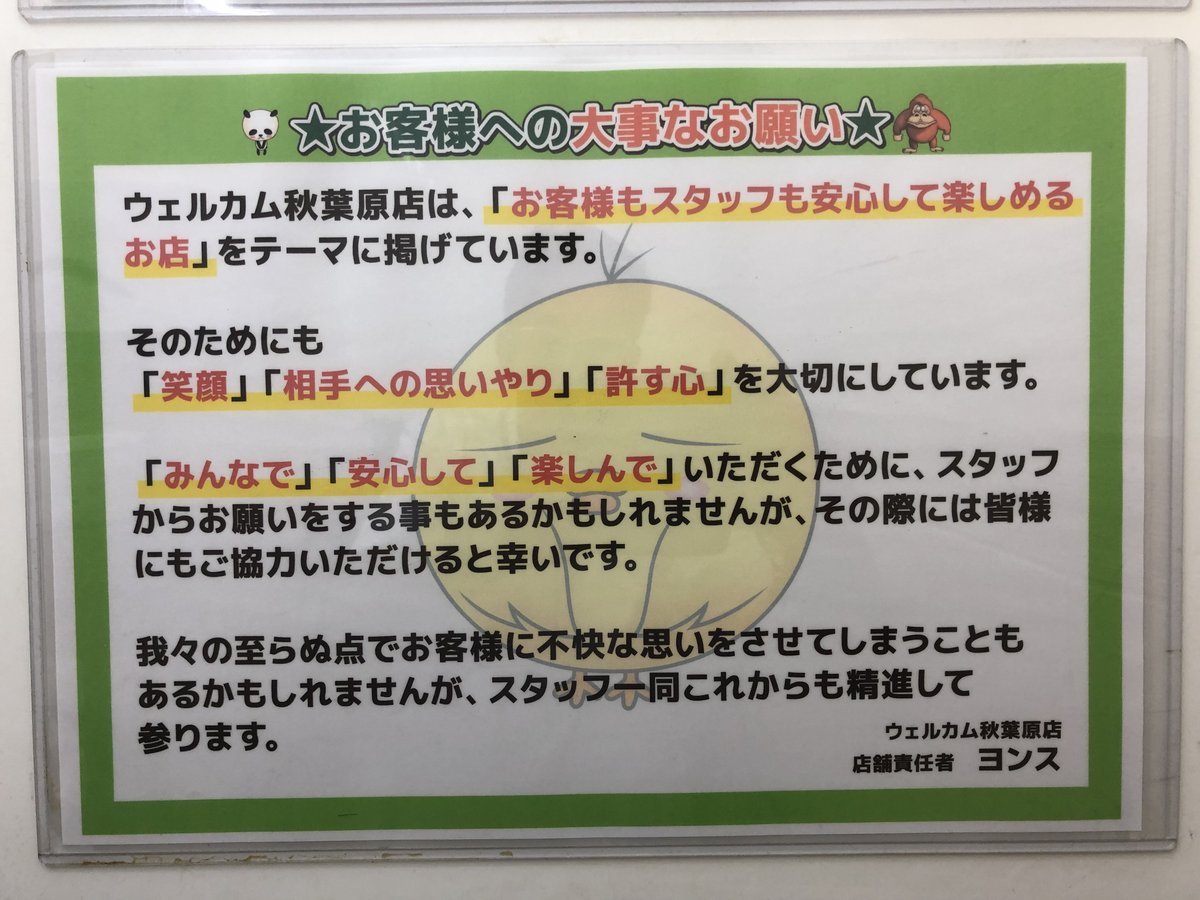 ヨンス on X: " ご報告本日4 1付でウェルカム秋葉原店の店長に就任致しました。ここに至るまで、名前を挙げればキリがないほどホントに沢山の方に支えられ成長させて頂きました! 今は亡き、マーチャオカプリコン店下山和生店長の元で育ったアルバイトとして初めて。