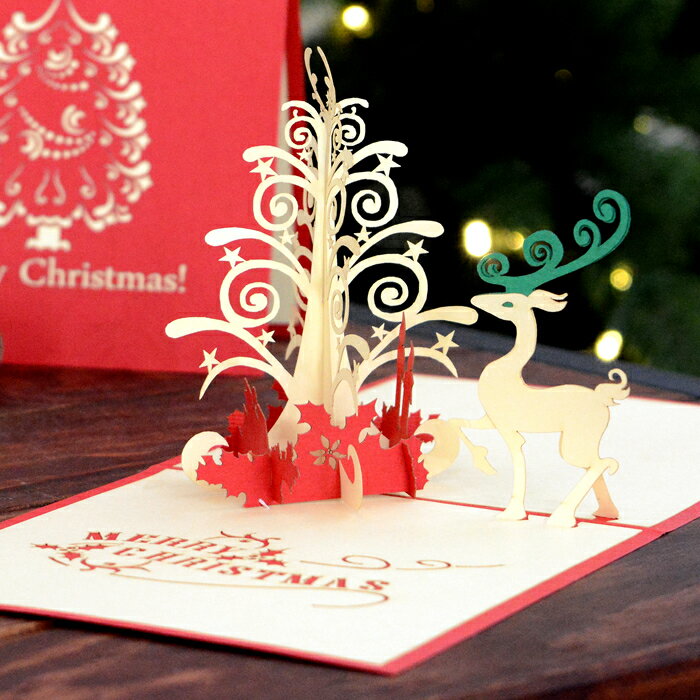 楽天市場最大500円クーポンポップアップクリスマスカード クリスマスツリー メリークリスマス Merry Christmas サンタクロースクリスマスツリー トナカイ メッセージカード 立体 飛び出すグリーティングカード ベトナム雑貨 アジアン雑貨 メール便対応 vn50464。