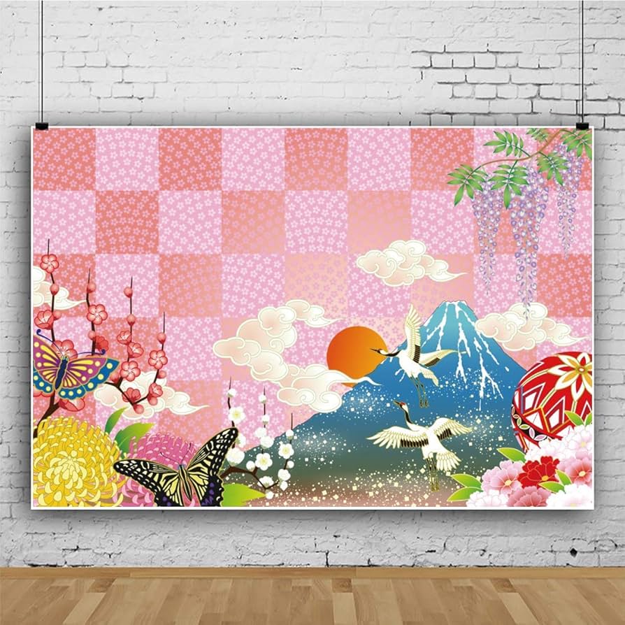 AmazonQinunipoto 背景布 和風 正月背景 和柄 背景 撮影 写真撮影用 写真の背景 ポリエステル 洗濯可 コミック 富士山さくら バタフライ 日の出 デイジー 白鶴 日本旅行の背景 写真背景 結婚式 誕生日会 写真館 2.1x1.5mQinunipotoバックペーパー・背景布。