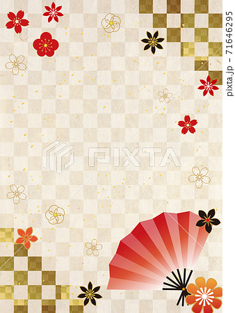 正月_扇と和柄_和紙格子柄_縦背景633のイラスト素材71646295- PIXTA。