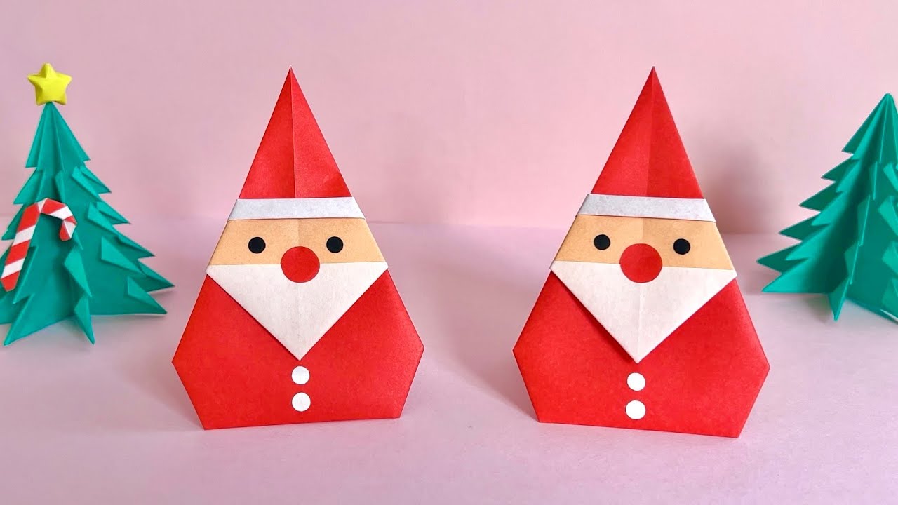 クリスマス 折り紙 超簡単!可愛い サンタクロース 折り方Christmas Origami Easy Cute Santa Claus 제일쉬운 산타 종이접기 크리스마스 겨울 종이접기。
