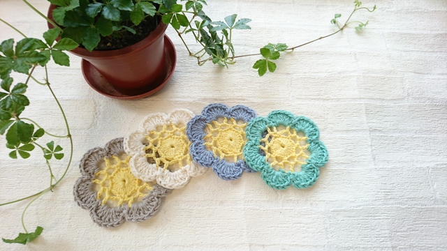 かぎ針編みで編む簡単コースター🌼動画と編み図付き🌼 - ☆ジジキキのお部屋☆。