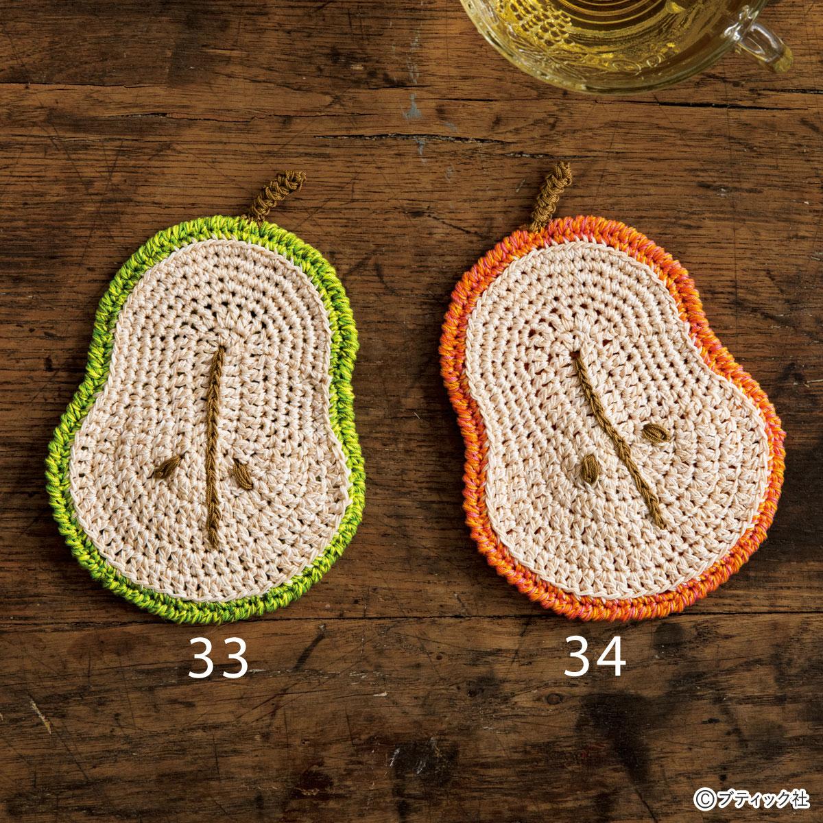 金票で編む「フルーツ型 洋梨 のコースター」の作り方ぬくもり。