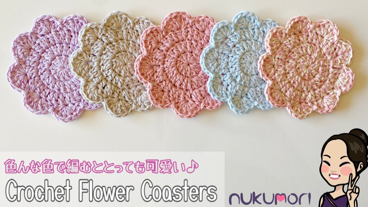 フラワーコースターの編み方動画 - 簡単初心者向け。