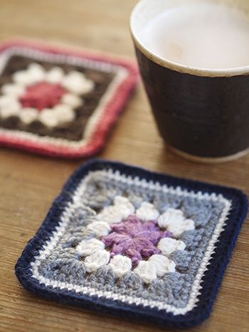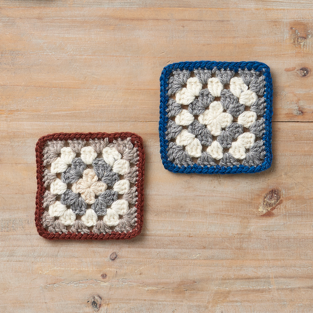 かぎ針編み「四角モチーフのコースター」の作り方ぬくもり。