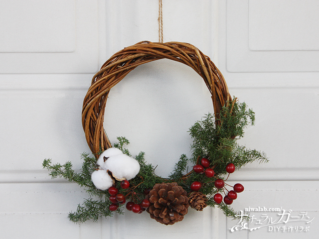 おしゃれなナチュラルクリスマスリースを手作り-うきうき花レシピ - はなどんやマガジン。