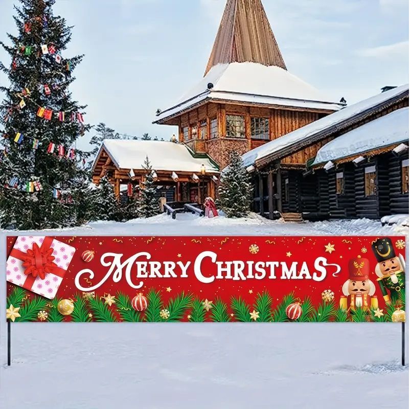 1枚のフェスティブポリエス タクロースデザインクリスマスバナー 17x78インチ 耐久性のある屋外吊り下げ装飾 家 - Temu Japan。