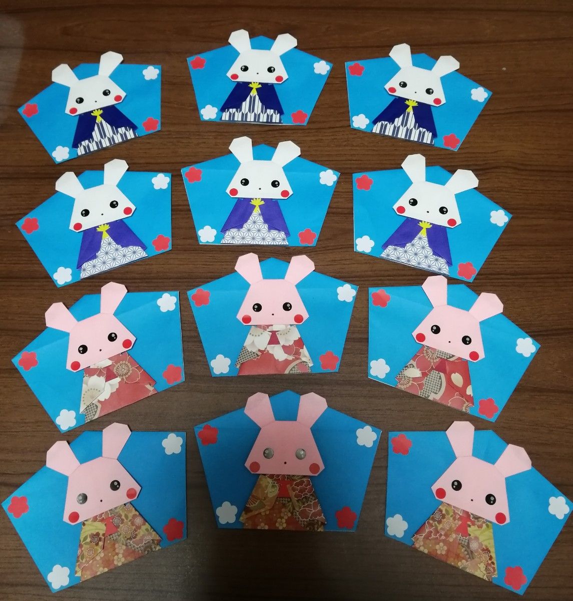 2023年の干支「うさぎ」のお正月壁面折り紙工作。