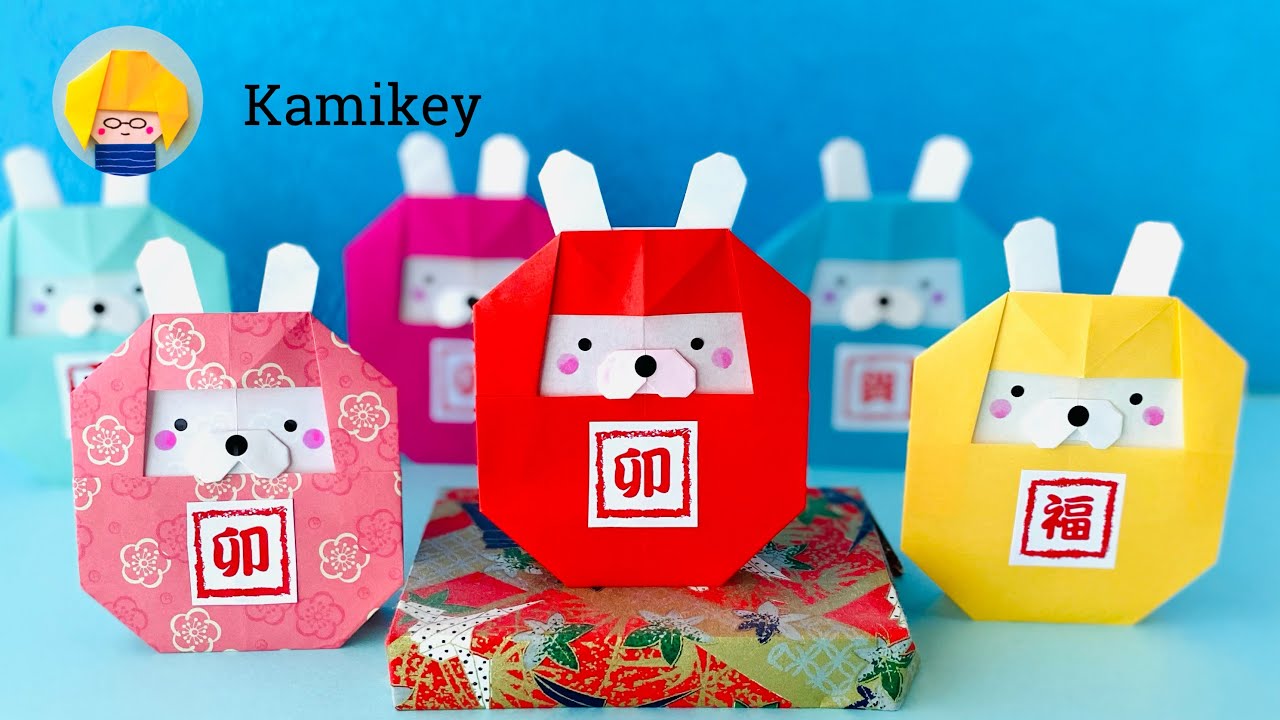 お正月 折り紙簡単 ! 可愛い うさぎだるま 折り方 干支 うさぎ 飾り 動物 Origami Rabbit Daruma。