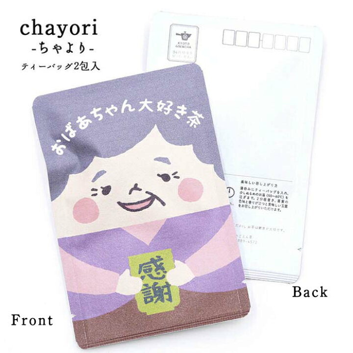 楽天市場 敬老の日 chayori おばあちゃん大好き茶京都産 玉露 ティーバッグ2包入 切手で送れるお茶のお便り かわいい美味しいポストカード・ハガキかわいい プチギフト 感謝ギフト 敬老ギフト 手紙 祖母 : 京都ぎょくろのごえん茶。