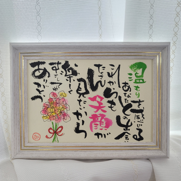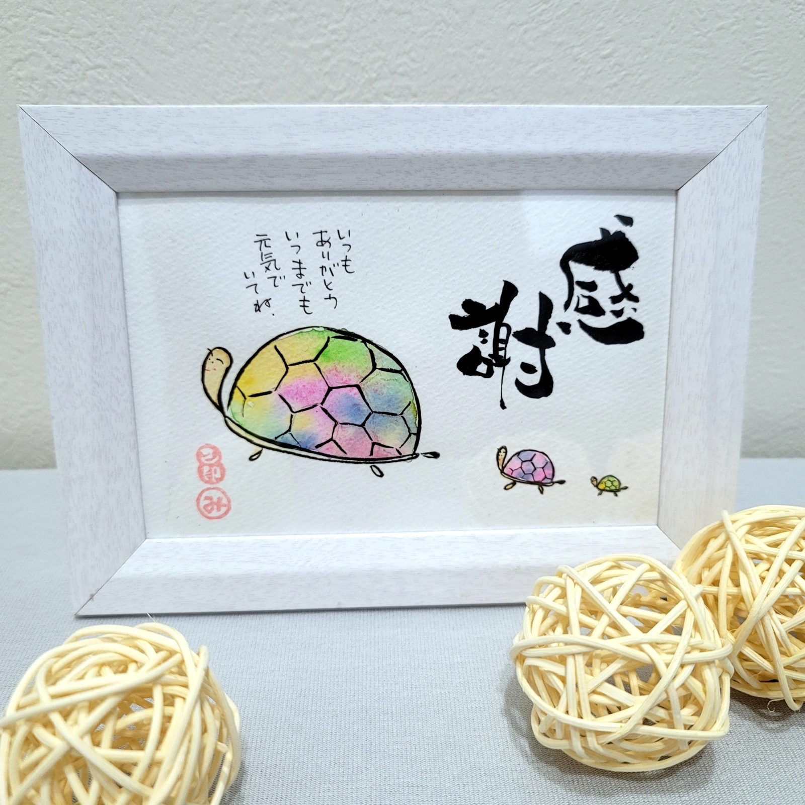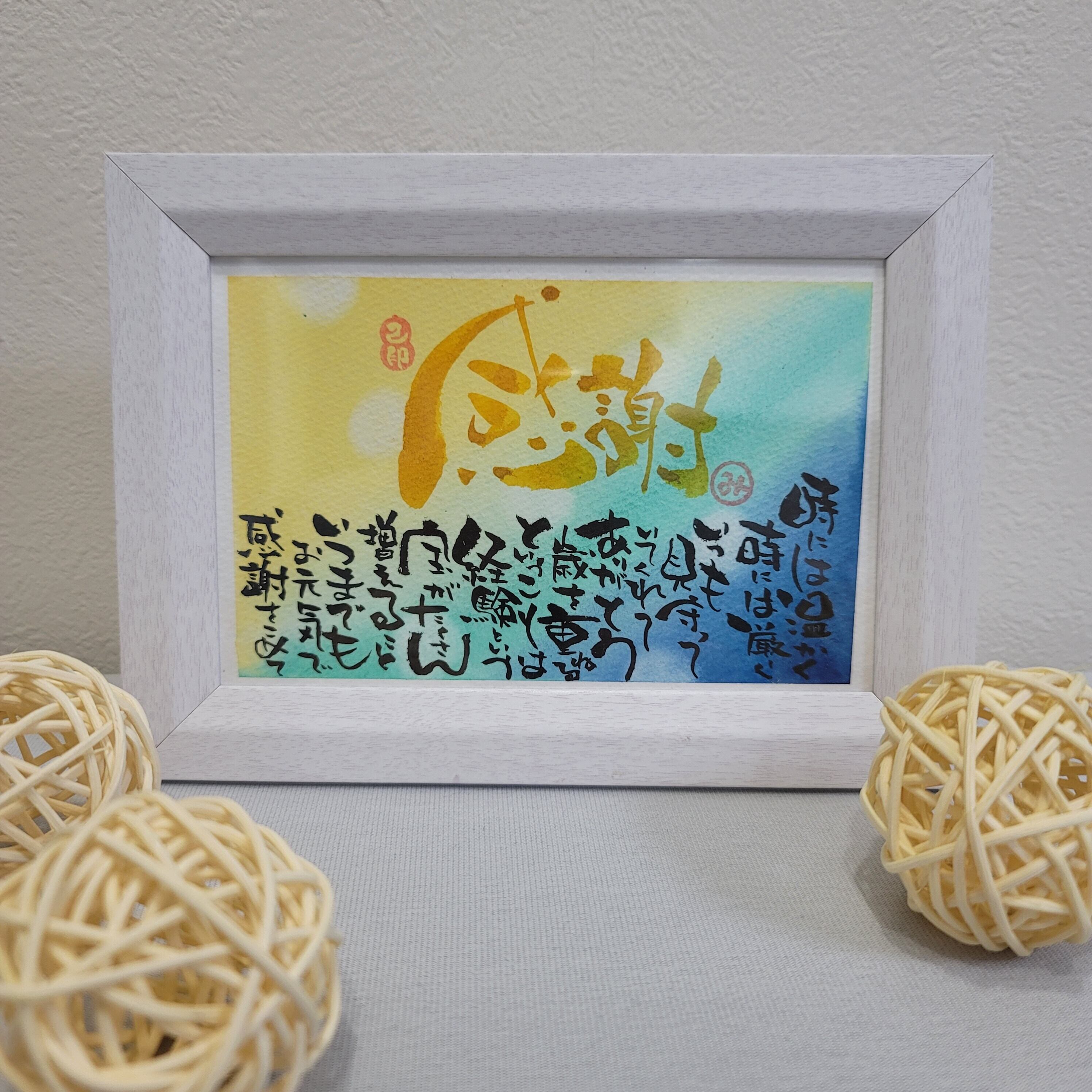 敬老の日 手書きポストカードサイズ額入り 感謝marumi。