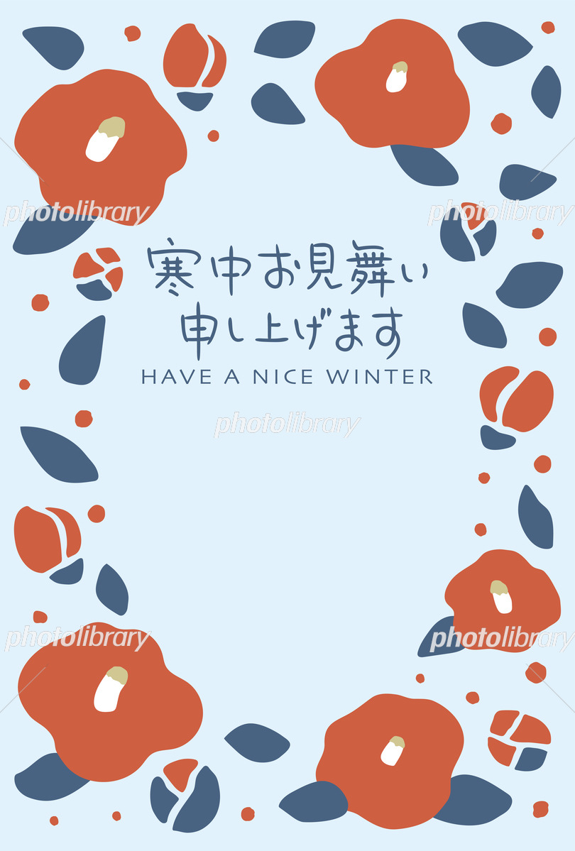 椿フレームの寒中見舞いテンプレート イラスト素材6550369- フォトライブラリー photolibrary。