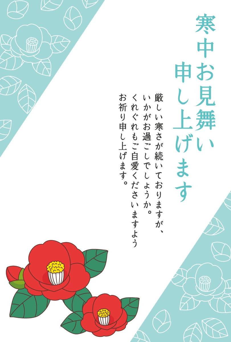 寒中見舞いのテンプレート「椿」 お手紙・年賀状 フレーム・テンプレート の無料イラスト介護アンテナ。