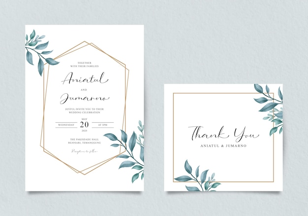 水彩の緑の葉フレームの結婚式招待状テンプレート イラスト素材7493032- フォトライブラリ。